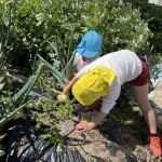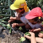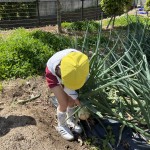 大きな玉ねぎを収穫するのが一人では難しかったいちご組さん。