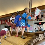 だんじり会館では、幼稚園から持っていったはっぴを着て楽しんでいました。