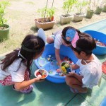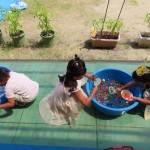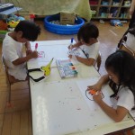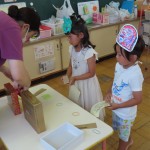 今日は夏休みのアフタスクールで全員が利用してそろったので、みんなで夏祭りをしました!鉄栗のおばけ的あてや、ぷにぷに風船お化け作り!スーパーボールすくい!