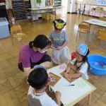 それぞれのコーナーを、お面つくりコーナーて作ったお面をつけて回りました。とても盛り上がり、楽しい一日でした!