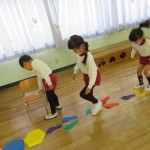 ゆうぎ室で、園庭でするときと違うものや方法を使って、迷路を作って思い切り体を動かしたよ。