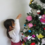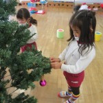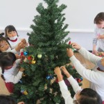 クリスマスツリーを飾ったよ!ライトがつくと、「先生一回部屋の電気消して、夜みたいにして!」