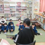 3学期初めて!図書室の読み聞かせがありました。お持ちの絵本一つと最近話題のだいおういかのお話でした。