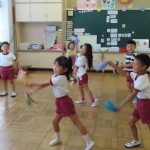 友達の動きを合わせたり、真似たり、一緒に踊ろう!と手をつないで回ったり、毎日いろいろな動きがでてきてとっても楽しいよ!