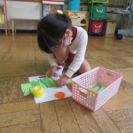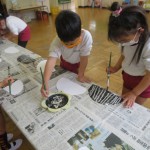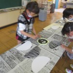 ダンゴムシを見つけたり、観察して楽しんでいるみんな。ダンゴムシを作りました。しかも、丸まっったり体を伸ばしたりして遊べる!マイだんごむし!