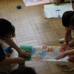 今年度初めての参観がありました。絵の具を使って手形でカラフルに用意していた紙を使って、親子で特大こいのぼりの製作をしました。