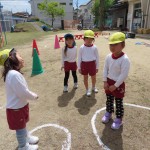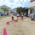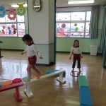 今日も子どもたちは園庭や遊戯室で元気に体を