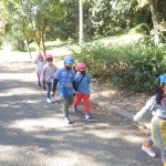 漁業協同組合さんのご協力で漁港の見学をさせていただきました。いいお天気でお散歩気分で出発!浜公園をぬけて、どんぐりや落ち葉を見つけながら進みました。