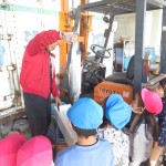 組合長さんがシラス漁の船にまず案内してくれ、説明してくれました。船には、魚を追いかける船と捕まえる船があるよ!