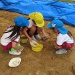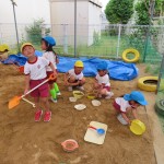 いました。年中児は岸城の年長児に泥だんごの作り方を教えてもらう姿も見られました。またくるね!とお別れしました。