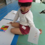 スクラッチの技法を使った、カメラを作って遊んだよ!クレパスでしっかり色の塗って、カメラに挟んで出来上がり!