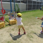明日から、みんなで水鉄砲の的をいろんな色で描いて、色水ができるか試していくことになりました!