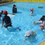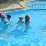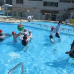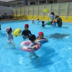 シャワーを浴びるときから大盛り上がり!歓声が響いていました。それから準備体操をして、いざプール入水!