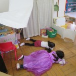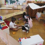 自分の好きなキャラクターになって遊ぶため、基地の中にお姫様、お父さん、お店屋さん、お姉さん、アニメのキャラクターなどバラエティー豊かなごっこ遊びに発展してきました。