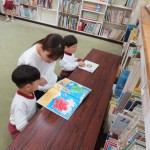 今年度も図書室の時間を週一回もらって、学校司書の先生に読み聞かせをしてもらっています。