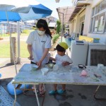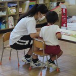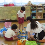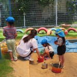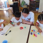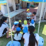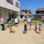 岸城中学校の職業体験で2日間、中学生が来てくれました。優しくて沢山遊んでくれるお姉ちゃん先生にみんな大喜びでした。好きな遊びやサツマイモの苗植え、リトミックにふれあい遊び、水やりなどいろんなことを一緒に楽しみました。充実した2日間!最後はお別れが寂しくて、「明日も来てほしいなぁ」と言っていました。