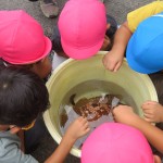 魚も見せてもらいました。「太刀魚の歯、めっちゃすごい」「キジハタ、泳いでる」「昨日、はまち食べた!」みんな口々に思い思いのことをしゃべっています。