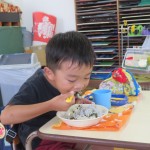 お昼ご飯は、釜揚げシラスを準備してくださったので、シラスどんぶりにしていただきました。みんな「おいしい」「おいしい」とお代わりしていました。