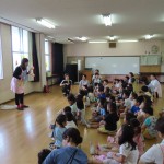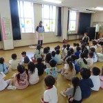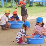 一緒にエプロンシアターをみて、磨き方を学びました。そのあとは一緒に水遊びをして、帰ってきました。