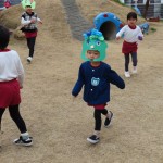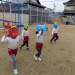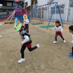 鬼役と豆まき役に2チームに分かれて、豆まきしました。自分のおなかに潜んでいる、追い出したい鬼をしっかり決めていたみんな。