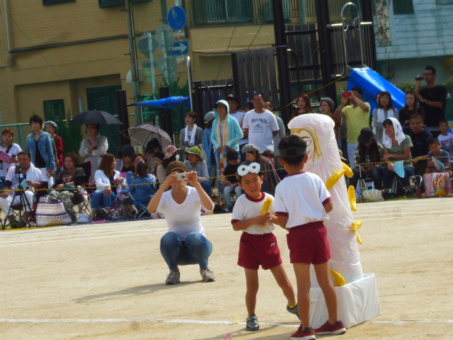とってもいいお天気の下、可愛いにミニオンに変身した子どもたち。