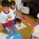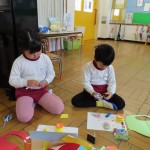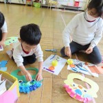 ということで、鬼のお面つくりをしました。年中さんも徐々に複雑な政策になって来ていますが、年長さんはより細かい作業が加わって、じっくりと製作に取り組んでいました。