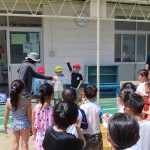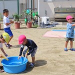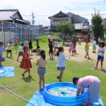 いつも幼稚園でしている水遊びを、お兄さんとお姉さんと一緒にするだけで、いつもしている水遊びが、すごくダイナミックになったよ!