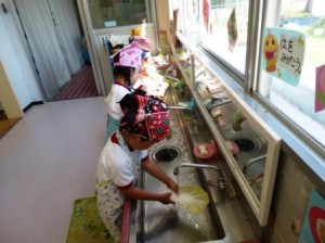 年少児は白菜を洗いました。とても丁寧に洗ってくれるので、