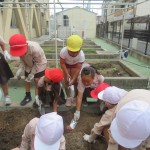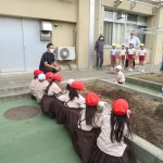 貴重な体験になりました。帰り道みんなで、「1年生になったら、今日の所においも植えるんやな」「幼稚園のこまたよぶわな」と話して、小学生になる楽しみが一つ増えました。