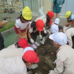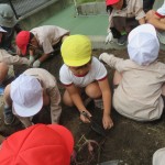 今年は幼稚園のサツマイモが不作でした。そのことを小学校の先生に話していたら、1年生の先生が、ちょうどもうすぐ1年生が芋ほりするので、いっしょにしませんか?