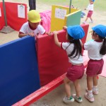 また、ある日は妖怪に詳しい子が遊具を妖怪のお屋敷に見立てたことから、みんなで妖怪の絵を描きだして、それをマットに張って、最終はお化け屋敷ごっこになったり毎日遊びの展開が楽しいです。