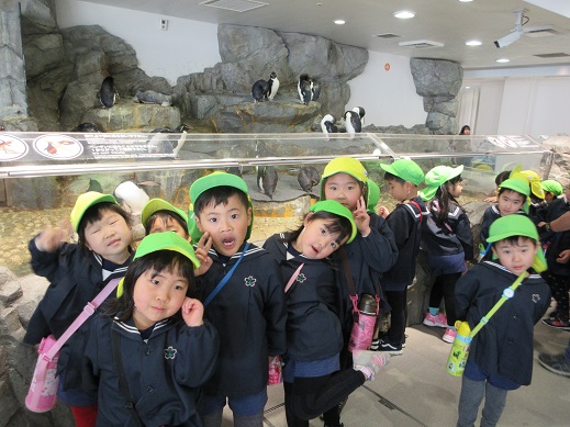 まずは、海遊館の周辺をお散歩。船を見たよ。海遊館の館内では、ジンベイザメや、クラゲまど、たくさんの生き物を見ました。園外で過ごすルールも自分達で守ろうと考えられるようになって、みんなが気持ち良く過ごすことができるようになりました。