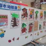 大芝幼稚園が一緒に絵画展をしました。買い物に来ている近隣の方々にも見てもらえて、幼稚園のことが少しでも