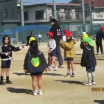 2月19日 ロング休憩交流(2年2組)縄遊びを教えてもらったね!