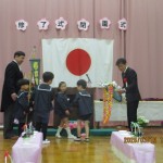 春木幼稚園の「修了式・閉園式」が行われました。年長児の皆さん、自信をもって羽ばたいていってください。1年生になっても頑張ってね。年中児の皆さん、こども園の年長さんで、頑張ってね。保護者の皆様、温かく見守っていただき、幼稚園教育にご理解ご協力いただき、ありがとうございました。この3月末で、春木幼稚園は91年の歴史に幕をおろします。91年間の感謝の気持ちで「閉園式」も行いました。春木幼稚園の旗を、岸和田市教育委員会様に、お渡ししました。長年、大切にさせてもらった「だんじり」を春木祭礼活性化委員会様にお渡しもしました。91年の長きに渡り、春木幼稚園を見守り、愛して、支えていただいた皆様に感謝の気持ちでいっぱいです。ありがとうございました。