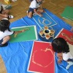 年中児は、絵の具遊びをしました。さて、何を描いて