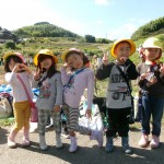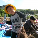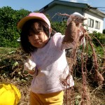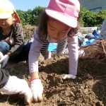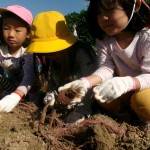 幼稚園と1・2年生はいもほり。3~6年生は稲刈りをしました。