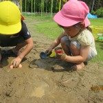 プールに入ったり、泥んこ遊びをしたり、色水遊びをしたり