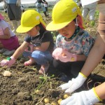 今日は小学校の4、5、6年生と一緒に東葛ファームに行って、じゃがいも掘りをしました。