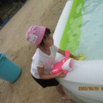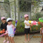 みんな 自分の水鉄砲を持ち寄っていよいよ始まります。
