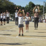 開会式に続いてラジオ体操を、小学生のみんなと一緒にしました。