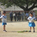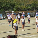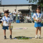 年中さんも年長さんも、体を大きく動かすことができて、きらきらとリボンが光ってとってもきれいでした。最後のポーズの時には、1年生のみんなが応援で参加してくれました。キラキラポンポンを振ってくれた子、園児が作った旗を持って応援してくれた子、1年生の応援が力になって、最後のポーズはかっこよく決まりました。1年生のみなさん、ありがとうございました♡
