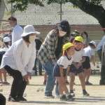 そのあとは、団体競技(親子競技)がありました。おうちの人と一緒にダンシング玉入れです♪