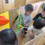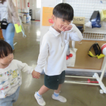 園庭は残念ながらコンディションが悪く室内で城北商店街のオープンです!