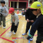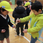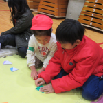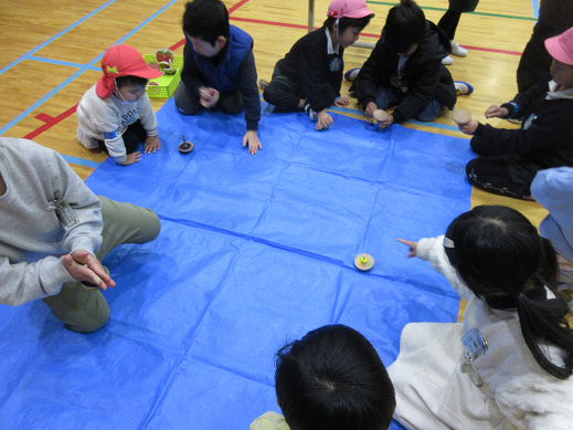 今日は小学校1年生と一緒に昔遊び交流をしました。