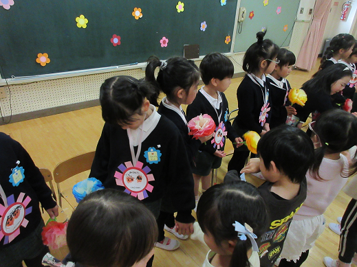 憧れの年長さん!元気でね!とプレゼントを渡し、ゲームをして楽しい時間を過ごしました。
