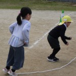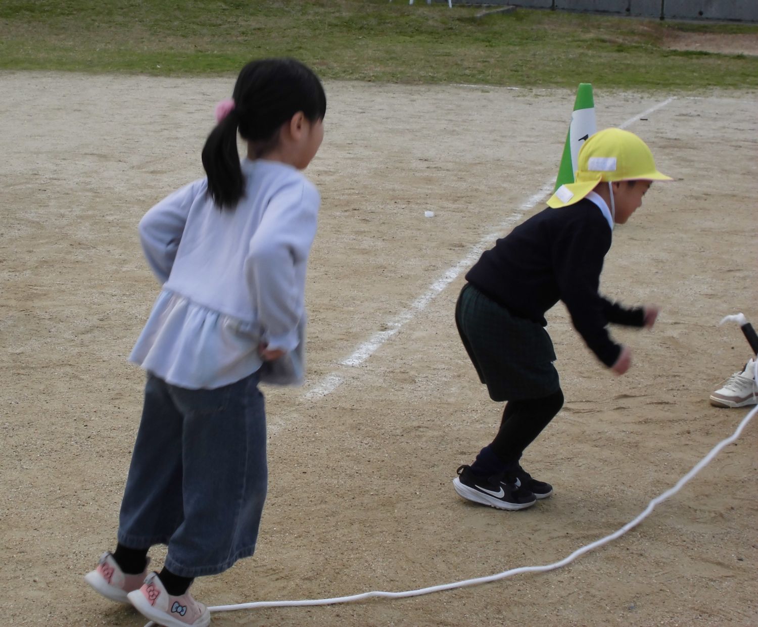 1年生、2年生と幼稚園チームは気持ちを合わせて跳びますが