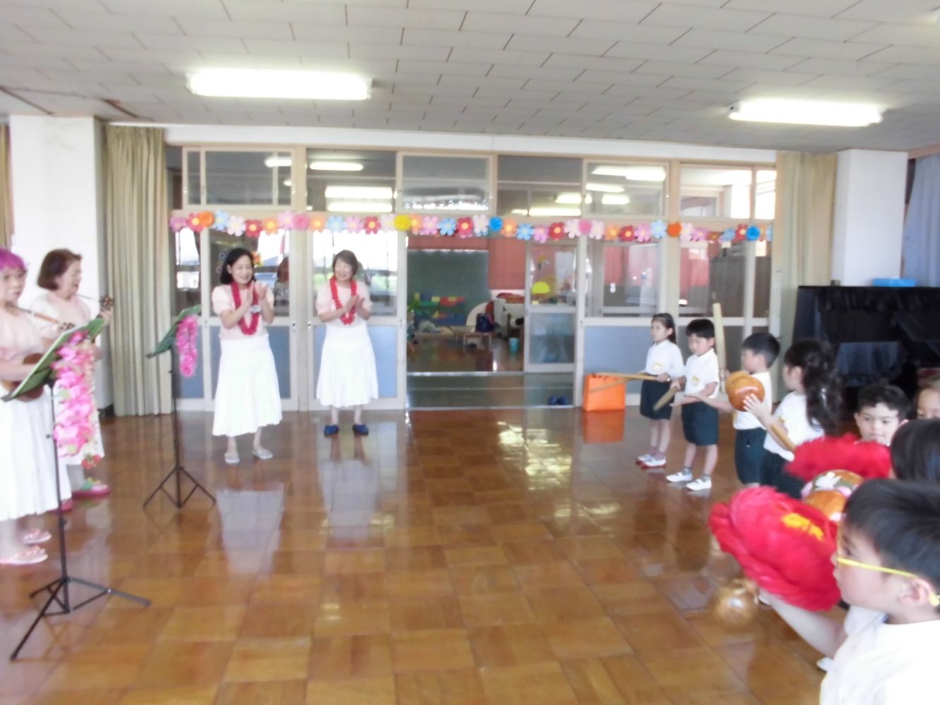 今年度は、楽器にも触れたり『南の島のハメハメハ大王』の曲に