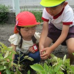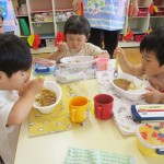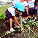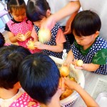 園の畑でとれた玉ねぎ、ジャガイモを使ってカレーパーティーをしました!