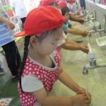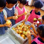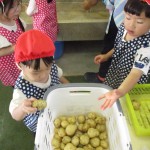 年少児はじゃがいもを一個ずつ丁寧に洗いました。